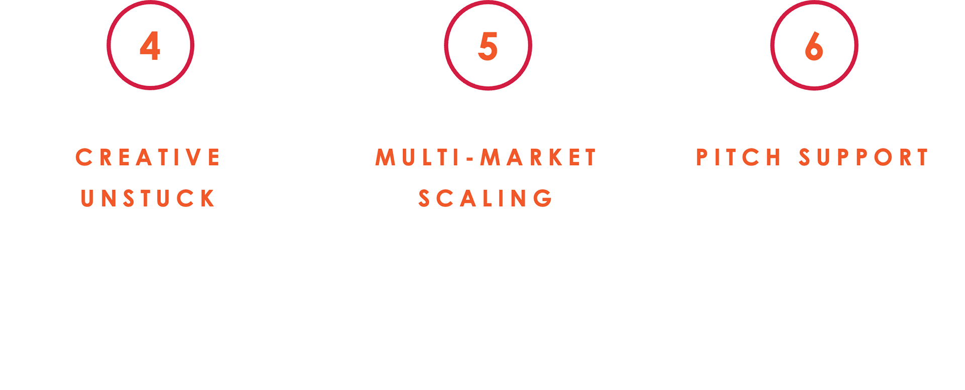 Agencies with wide or difficult briefs, staling client relationships, brands with stalled campaigns or in need of a broader media expansion. Franchisees needing local creative adaptation or Media Companies with co-productions or added-value requests